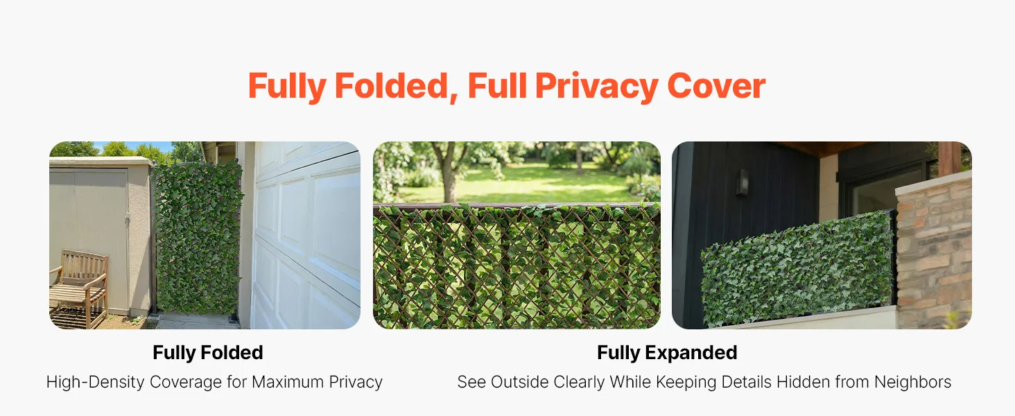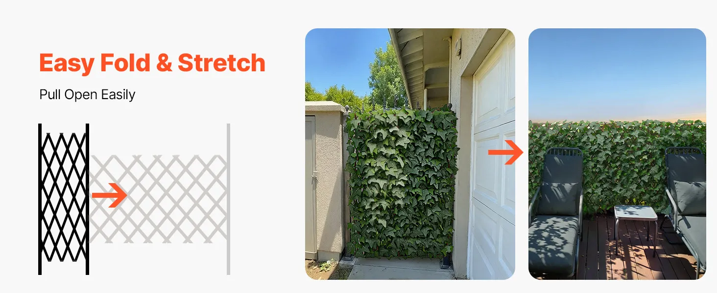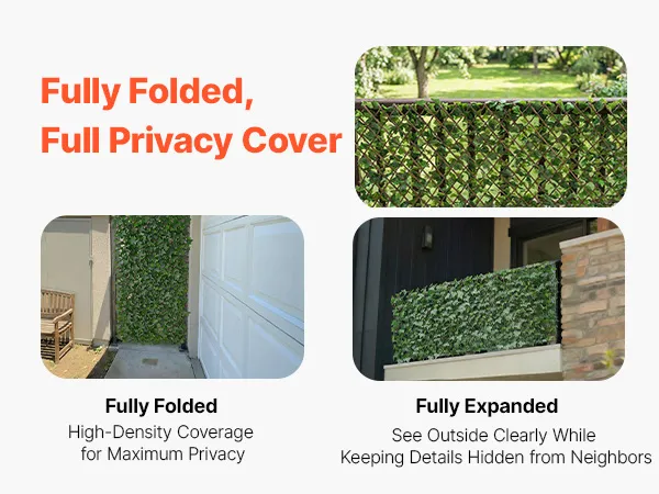 Expandable & Foldable Design: This grass wall can be fully folded with minimal gaps for complete coverage or expanded to allow clear outward visibility, maintaining privacy by limiting views from neighbors and passersby
