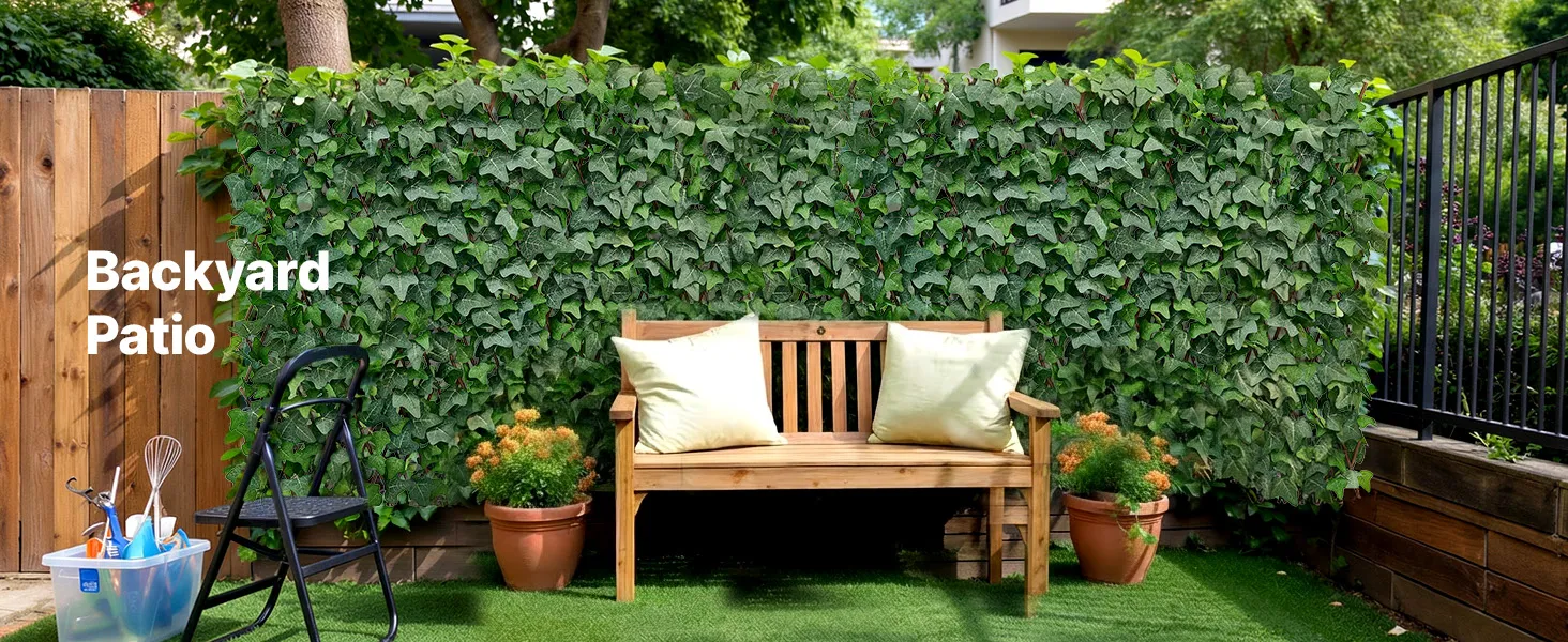 Designed to fit patios, balconies, and backyard fencing, this artificial plant fence provides added privacy while enhancing outdoor spaces with a natural green look, making it suitable for both decorative and functional use.
