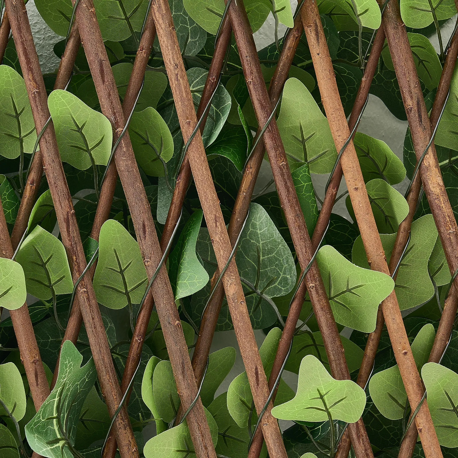 High-Density Privacy: Featuring 340 fabric leaves and 30 real willow-wood slats, this artificial plant wall provides effective screening for second-floor terraces or backyard fences, helping protect privacy while creating a lush greenery backdrop