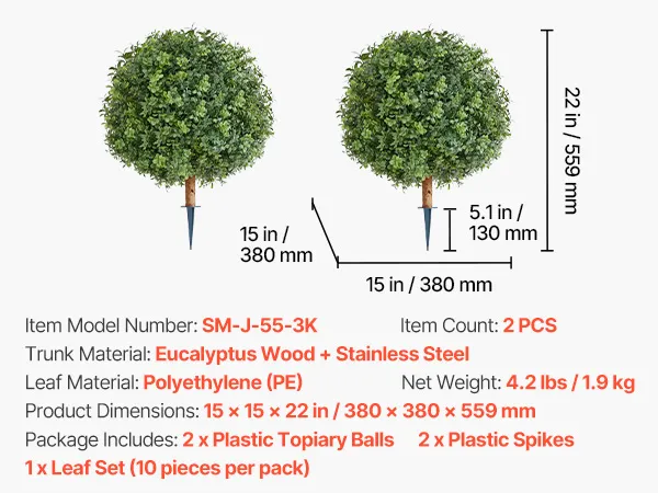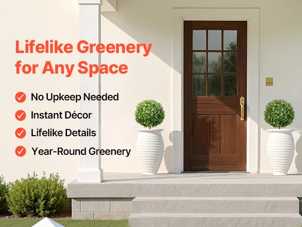 Realistic & Lifelike Look: These 22-inch artificial topiary trees feature lush, dense PE leaves with natural color variations and realistic textures. The reinforced trunk and neatly shaped foliage create an elegant, stays beautiful year-round