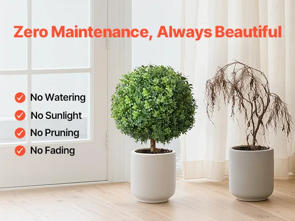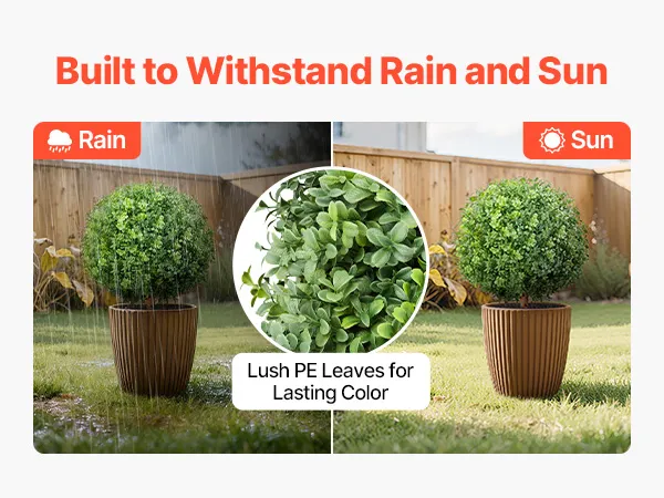 Sturdy & Weather-Resistant: Crafted from premium PE material, these topiary trees withstand sun, rain, and wind without fading or deforming. Ideal for both indoor and outdoor spaces, offering long-lasting greenery with zero upkeep