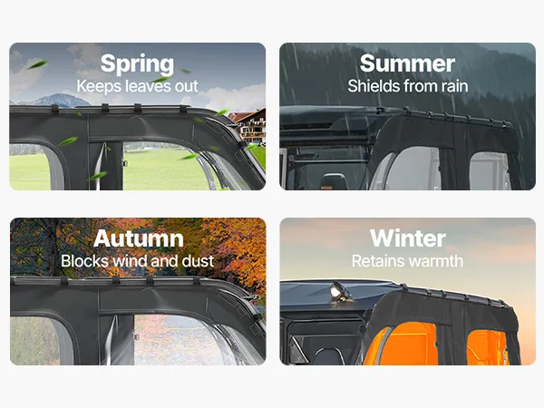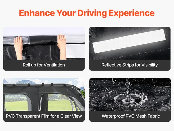 All-Weather Protection: Crafted from high-quality transparent PVC film and PVC mesh fabric, this UTV soft cab enclosure is waterproof, easy to clean, and resistant to yellowing. It shields you from dust and rain in summer, wind and snow in winter