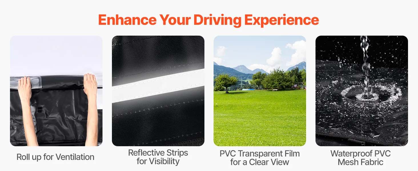 Night Reflective Strips: Equipped with eight reflective strips, the soft UTV side window kit boosts visibility in low light or harsh weather. It helps others spot your vehicle and lets you locate the zippers easily in the dark