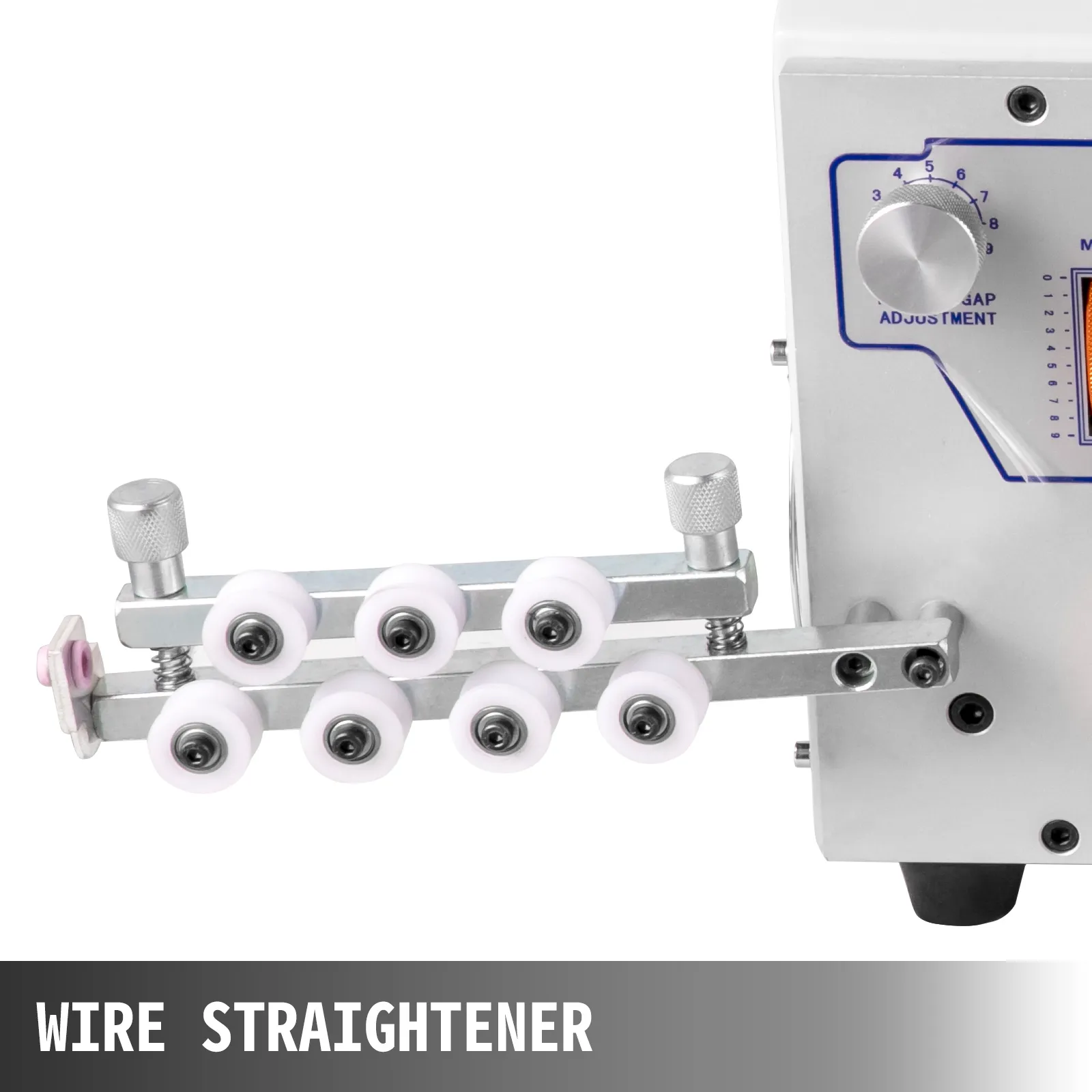 【STABLE AND STELLAR PERFORMANCE】 - Electrical Connection: AC 220V/50Hz; Wire cross-section: 0.1-25 mm²; Wire Length Range: 1-100,000 mm; Cutting Tolerance: ±(0.002*L) mm. The wire stripper machine is great for you, who may have a lot of wire to strip. With an LCD on the top, you can set values to get precise and fast cuttings.