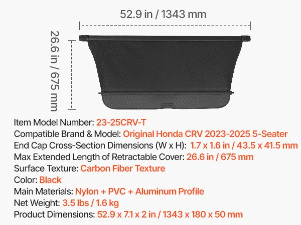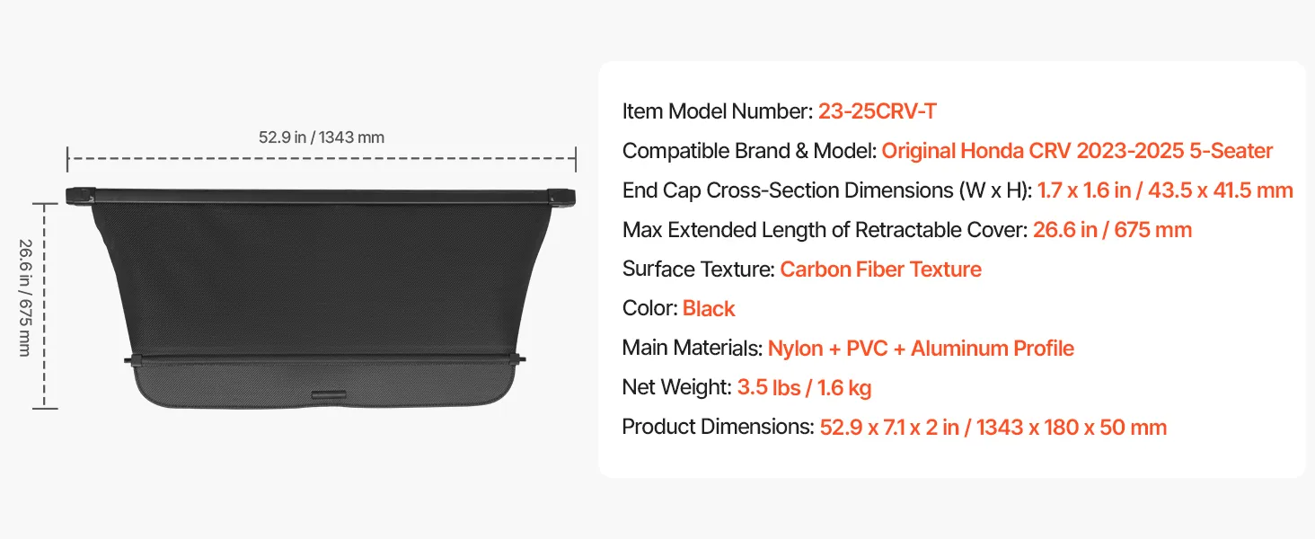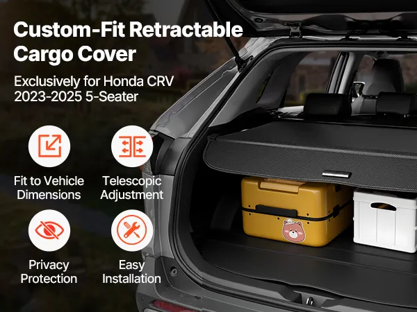 Ideal Fit for Your Car: This retractable cargo cover fits the Honda CRV 2023-2025 5-Seater. Please check your vehicle's year before purchase. It is designed to match the trunk's curves and fits precisely as a practical accessory