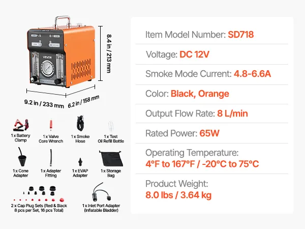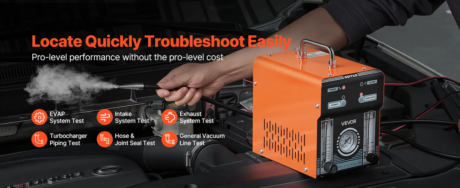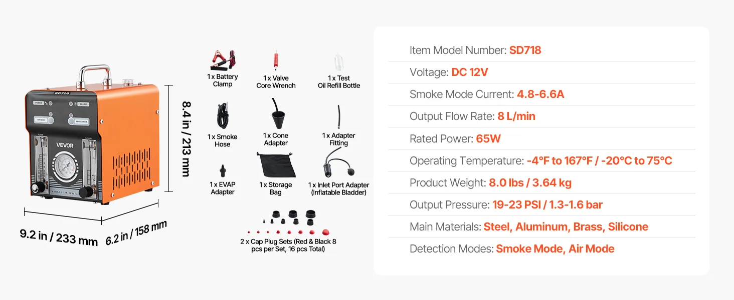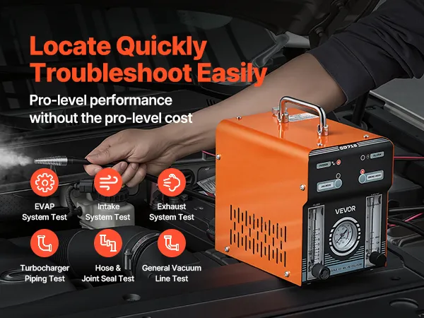VEVOR Automotive Smoke Machine Leak Detector, DC 12V EVAP Vacuum Diagnostic Tester with Air Pump, Pressure Gauge, Flow Meter & Oil Level Gauge, Dual-Mode for Cars, Motorcycles, Trucks, Boats, ATVs VEVOR Automotive Smoke Machine Leak Detector, DC 12V EVAP Vacuum Diagnostic Tester with Air Pump, Pressure Gauge, Flow Meter & Oil Level Gauge, Dual-Mode for Cars, Motorcycles, Trucks, Boats, ATVs