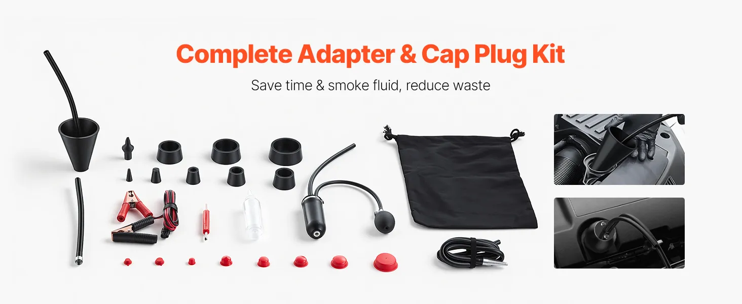 • Complete Sealing Kit: Our auto smoke machine comes with a 16-piece cap plug kit, cone adapter, EVAP adapter, and inlet port fitting. It allows you to seal various lines and passages for accurate leak detection