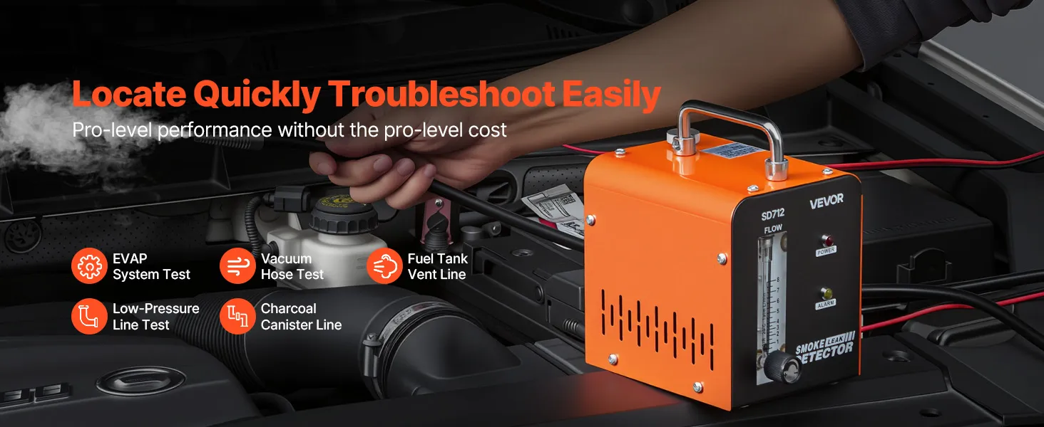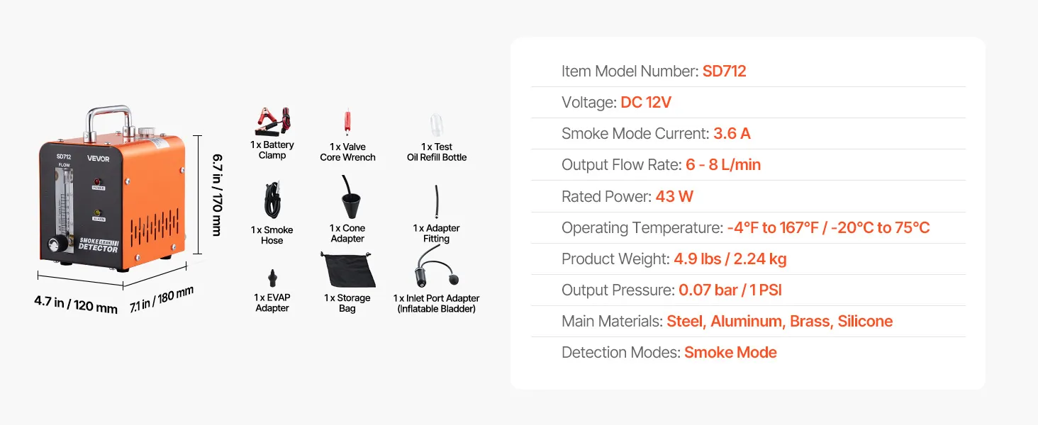 Built for Low-Pressure Systems: This automotive smoke machine leak detector is designed for EVAP systems and vacuum lines that require lower test pressure. Its 1 ± 0.5 PSI output is ideal for detecting leaks in sensitive vehicle systems