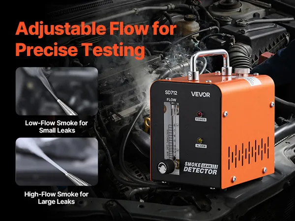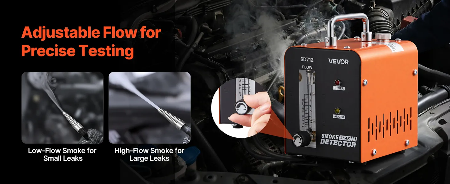Fine-Diagnostic Aid: The automotive smoke machine uses a flow meter and flow control knob to help detect small leaks. It further confirms the presence of leaks during low-pressure testing