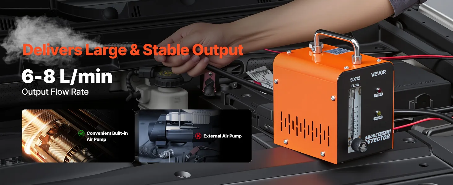 Standalone Operation: This car smoke machine features a built-in air pump that delivers stable smoke output without requiring an external air compressor. It makes leak points easier to detect, even in tight engine compartments
