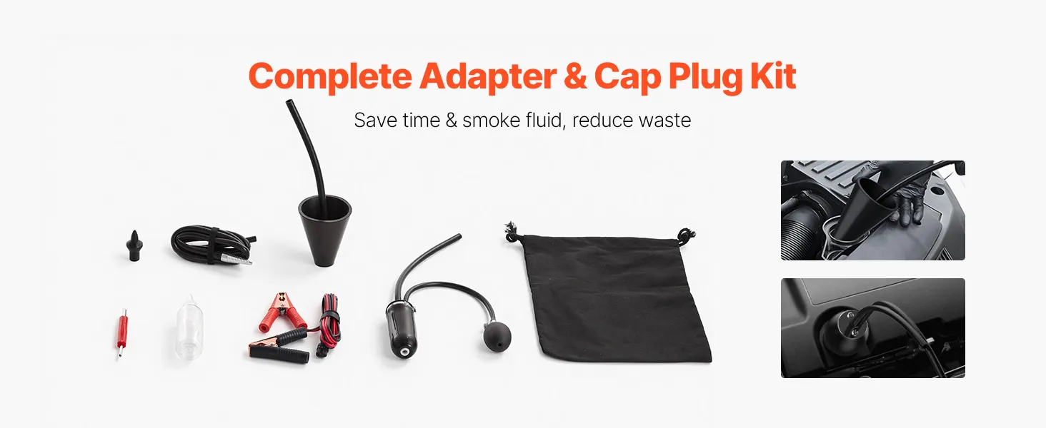 Practical Sealing Kit: Our auto smoke machine includes essential fittings and adapters for sealing lines and ports. It is ideal for EVAP and vacuum system testing