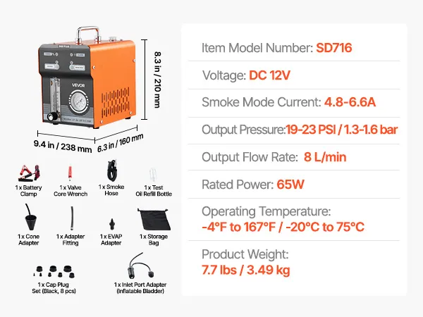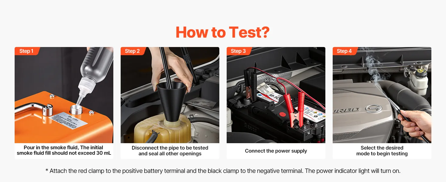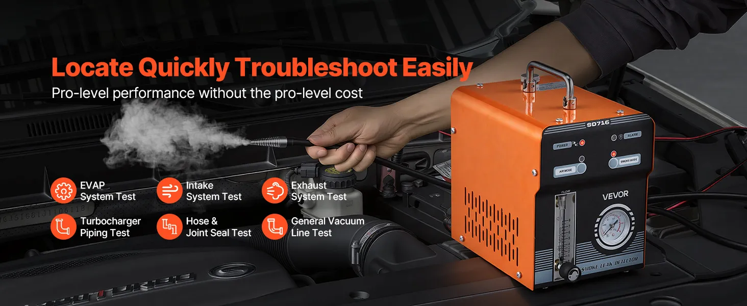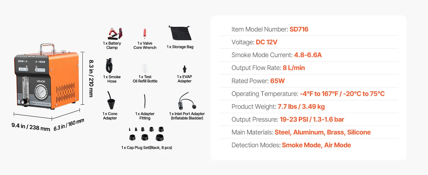 Wide System Coverage: This automotive smoke machine leak detector supports leak detection for EVAP lines, vacuum hoses, intake passages, turbo piping, and exhaust systems. It is suitable for cars, trucks, boats, motorcycles, and ATVs