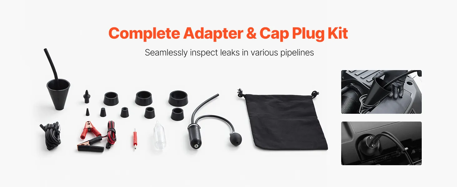 Practical Sealing Kit: Our auto smoke machine comes with an 8-piece cap plug kit, cone adapter, EVAP adapter, and inlet port fitting. It allows you to seal various lines and passages for accurate leak detection