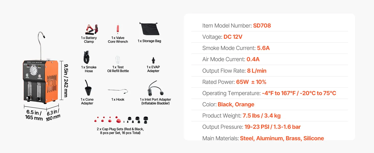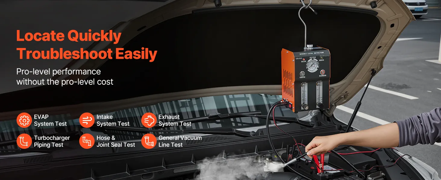 Wide System Coverage: This automotive smoke machine leak detector supports leak detection for EVAP lines, vacuum hoses, intake passages, turbo piping, and exhaust systems. It is suitable for cars, trucks, boats, motorcycles, and ATVs