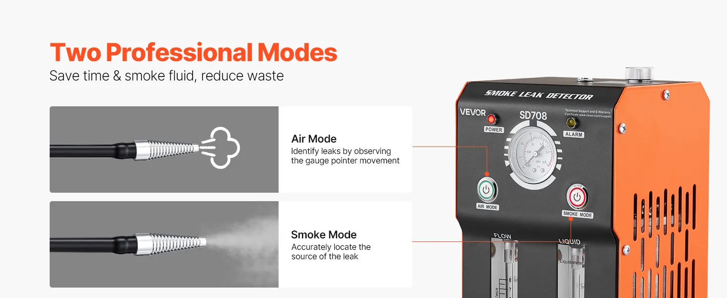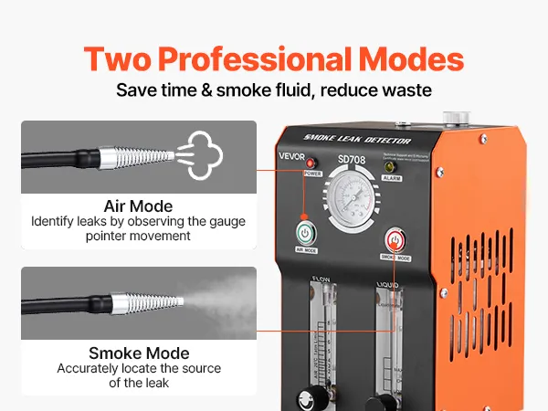 Dual-Mode Testing: Our automotive smoke tester allows you to use Air Mode first to check the system sealing condition. Then switch to Smoke Mode to visually locate leak points, reducing unnecessary smoke fluid consumption