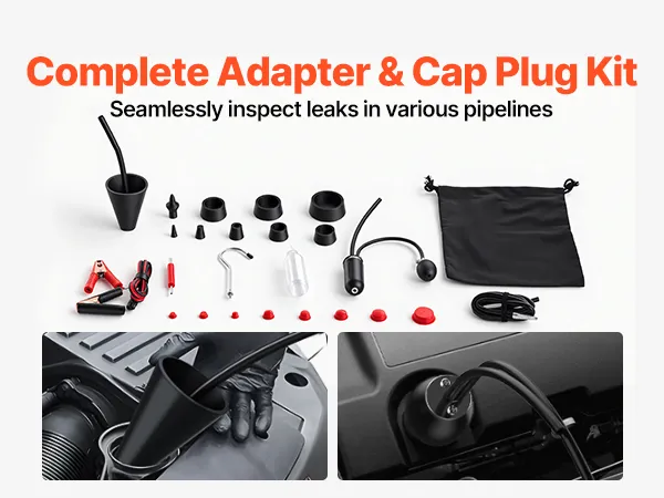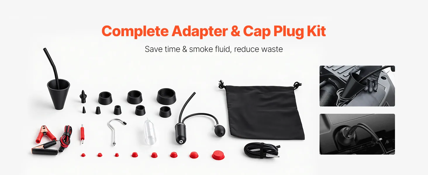 Complete Sealing Kit: Our auto smoke machine comes with a 16-piece cap plug kit, cone adapter, EVAP adapter, and inlet port fitting. It allows you to seal various lines and passages for accurate leak detection