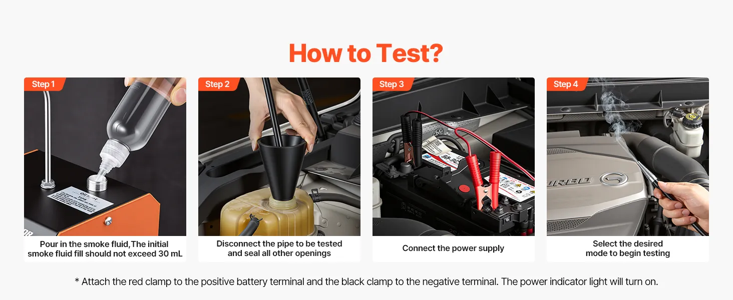 Dual Air Pump Output: This car smoke machine is equipped with dual built-in air pumps that provide stable airflow and dense smoke. It makes leak points easier to detect, even in tight engine compartments