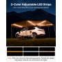 3-Color LED Lighting: Built-in 4 adjustable LED strips with one-touch switching between warm, white, and cool light. Our 270 degree awning supports 12V car or USB power, creating a cozy atmosphere for night activities