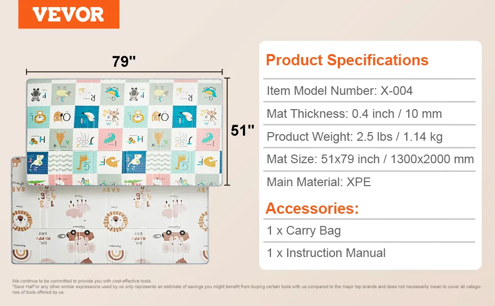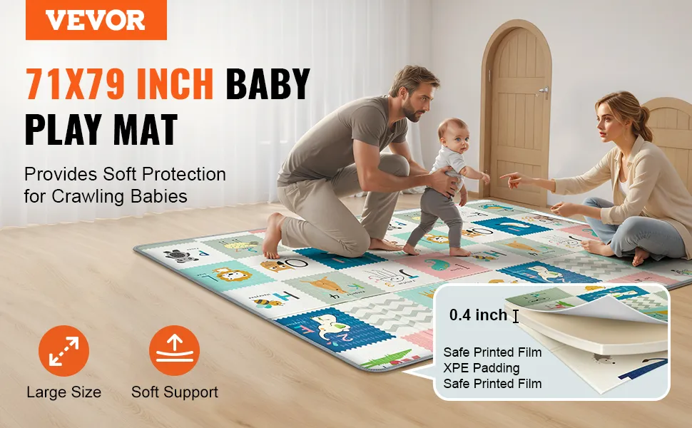 VEVOR Baby Play Mat, 51""x79"" Baby Crawling Mat, Non-Slip One-Piece Foam Baby Playmat, Foldable Portable Reversible Floor Mat with Travel Bag, Waterproof Activity Playmats for Babies, Toddlers, Infants VEVOR Baby Play Mat, 51""x79"" Baby Crawling Mat, Non-Slip One-Piece Foam Baby Playmat, Foldable Portable Reversible Floor Mat with Travel Bag, Waterproof Activity Playmats for Babies, Toddlers, Infants