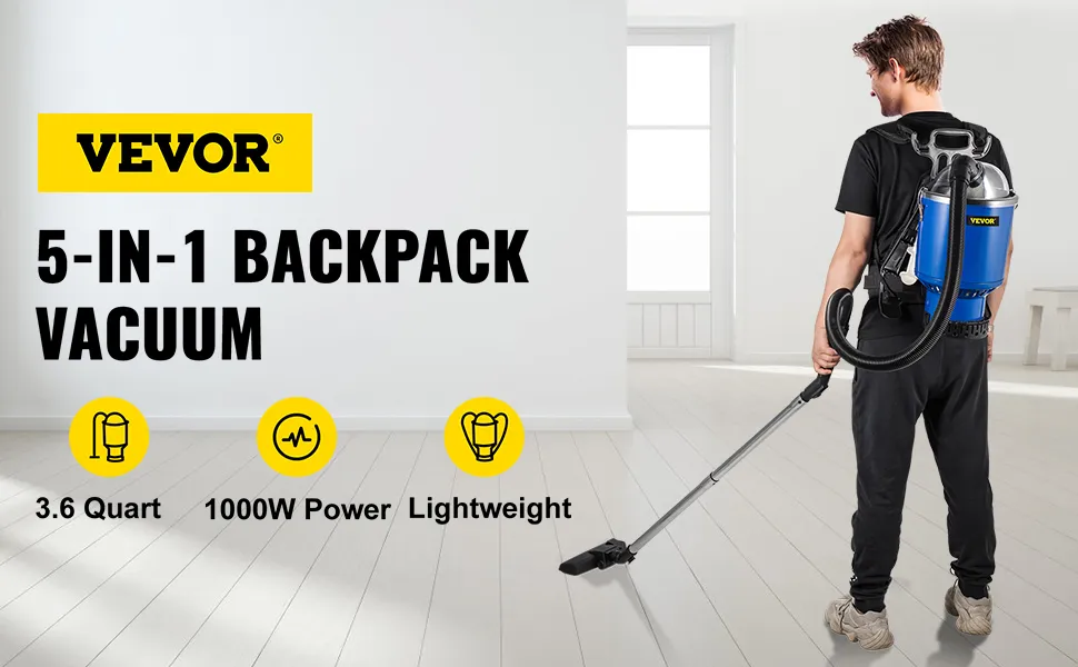 VEVOR Backpack Vacuum, 4L Backpack Vacuum Cleaner, 5-IN-1 Lightweight Backpack Vacuum, HEPA Filtration Vacuum Backpack, Commercial Industrial Backpack Vacuum with Telescoping Wand, Tool Kit, Corded VEVOR Backpack Vacuum, 4L Backpack Vacuum Cleaner, 5-IN-1 Lightweight Backpack Vacuum, HEPA Filtration Vacuum Backpack, Commercial Industrial Backpack Vacuum with Telescoping Wand, Tool Kit, Corded