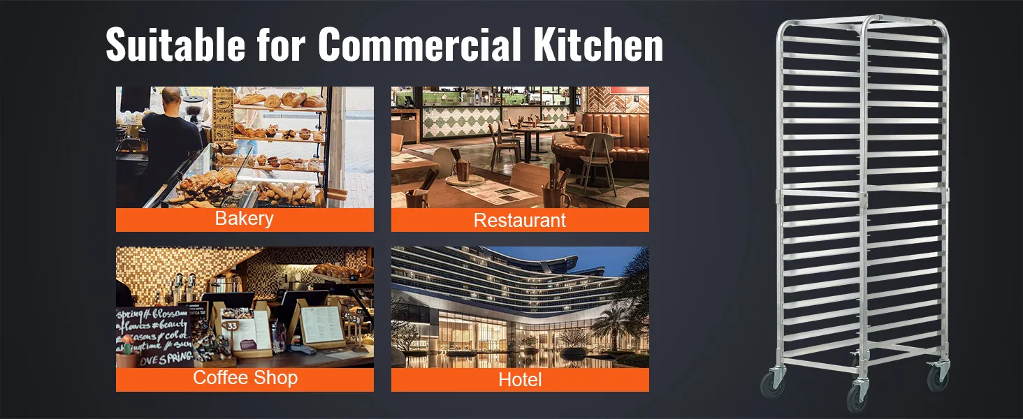 Whether for home bakers needing extra space or commercial kitchens requiring reliable storage, the VEVOR Bun Pan Rack is versatile and practical. Its thoughtful design supports various baking needs, ensuring tools and pans remain organized and easily accessible. This rack is an essential solution for maintaining an efficient and tidy workspace, no matter the setting.