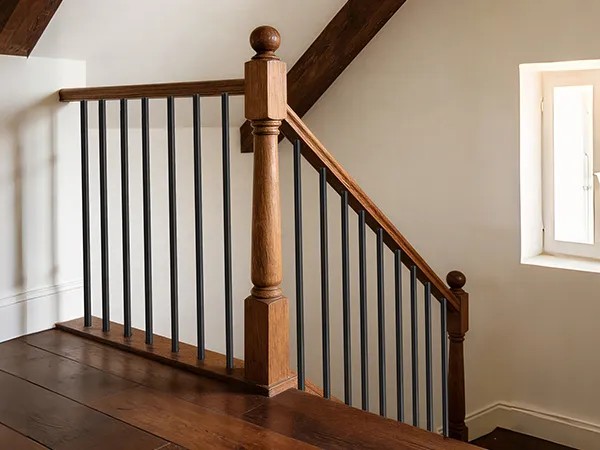 Easy DIY: This aluminum stair balusters kit includes screws and slope connectors for 30° to 35° stair angles, making angled stair sections easier to install