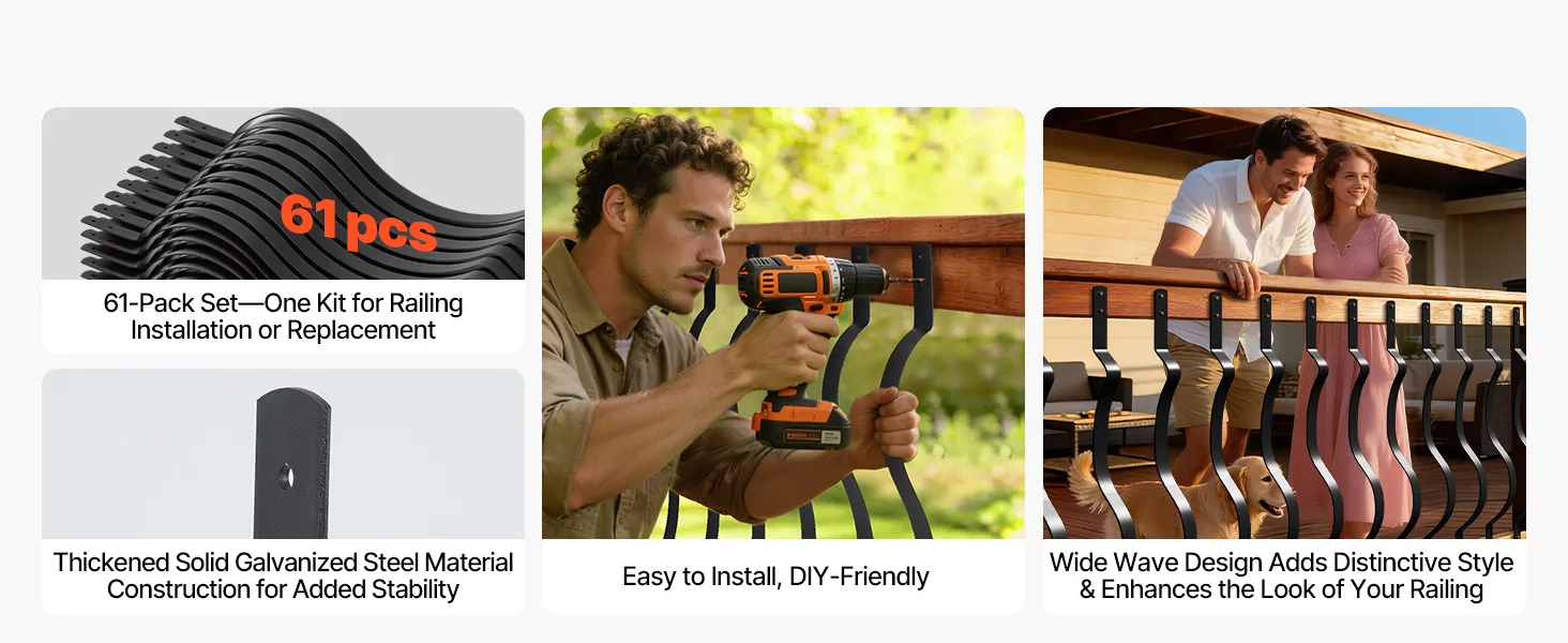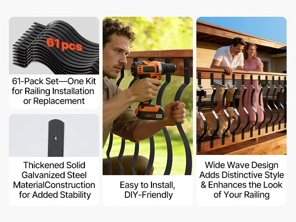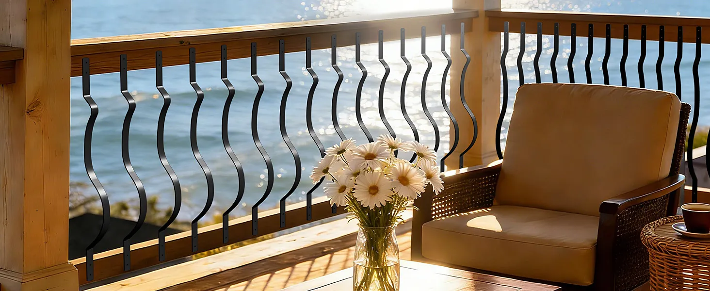 Wavy Design for Railing Updates: Wavy solid galvanized steel deck balusters add a flowing decorative touch to give your railing a more distinctive look for upgrades or replacements