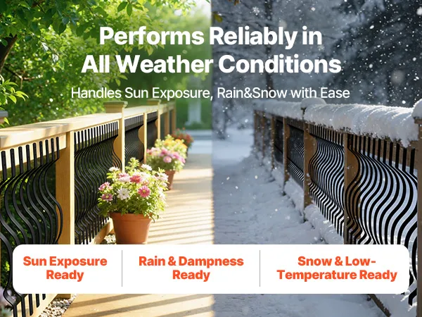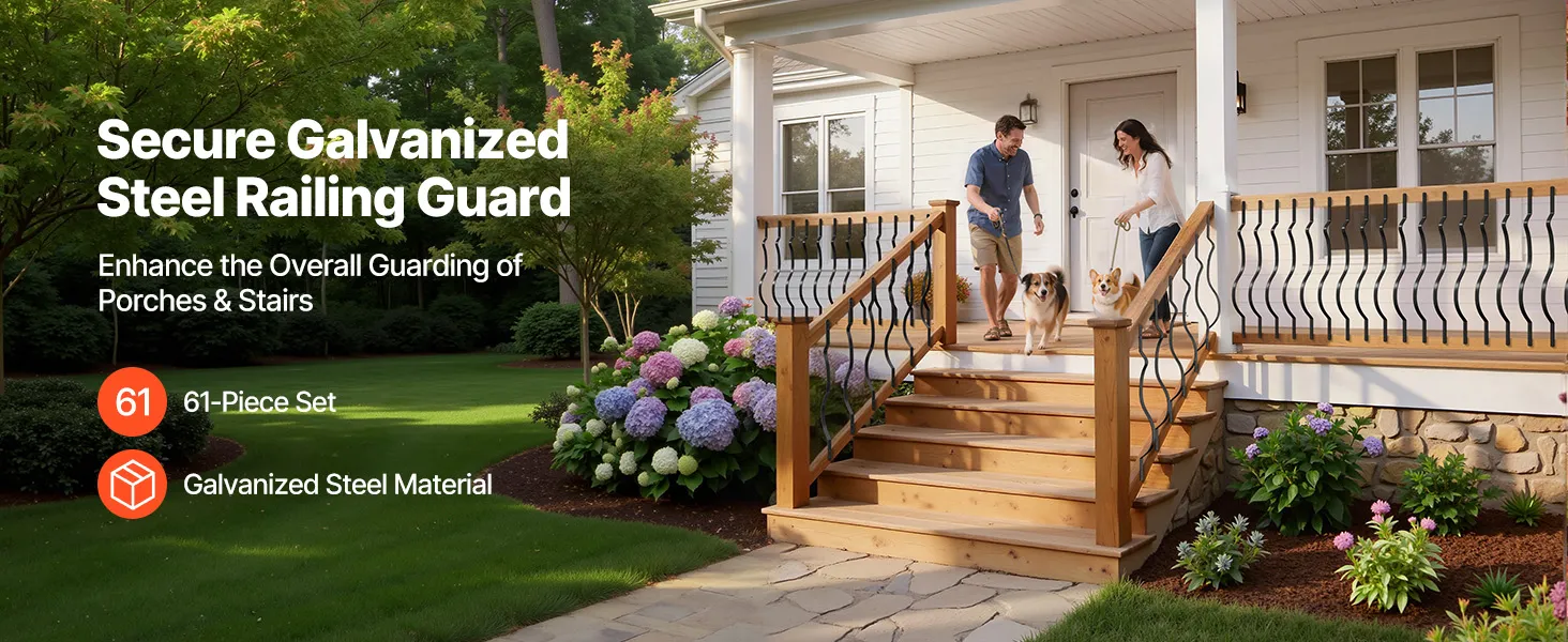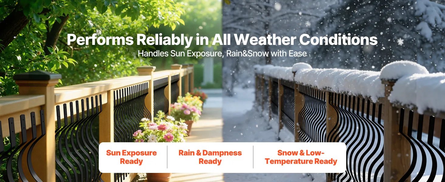 Outdoor Use: The coated galvanized steel deck railing spindles withstand sun, rain, and wet conditions, while end caps help reduce water entry for longer-lasting outdoor use