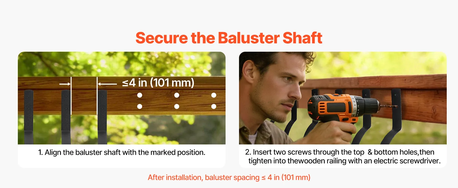 Easy DIY Install: This stair balusters kit includes screws—align to marked positions and tighten for a secure install