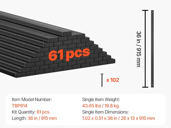 VEVOR 61 Pack Deck Balusters, 91.5 cm Galvanized Steel Railing Spindles, Hollow Rectangle Metal Decking Stair Balusters with Pre-Drilled Hole, End Caps, Screws, for Deck, Porch & Stair Railing, Black