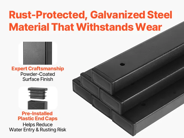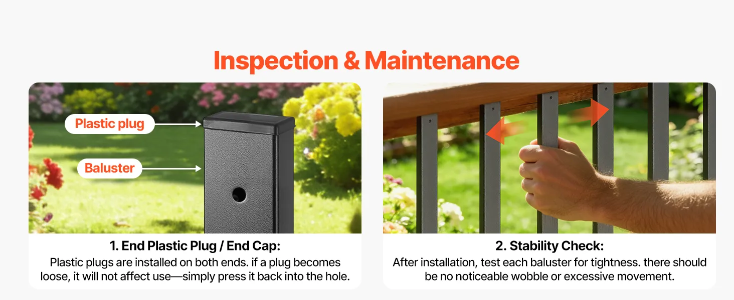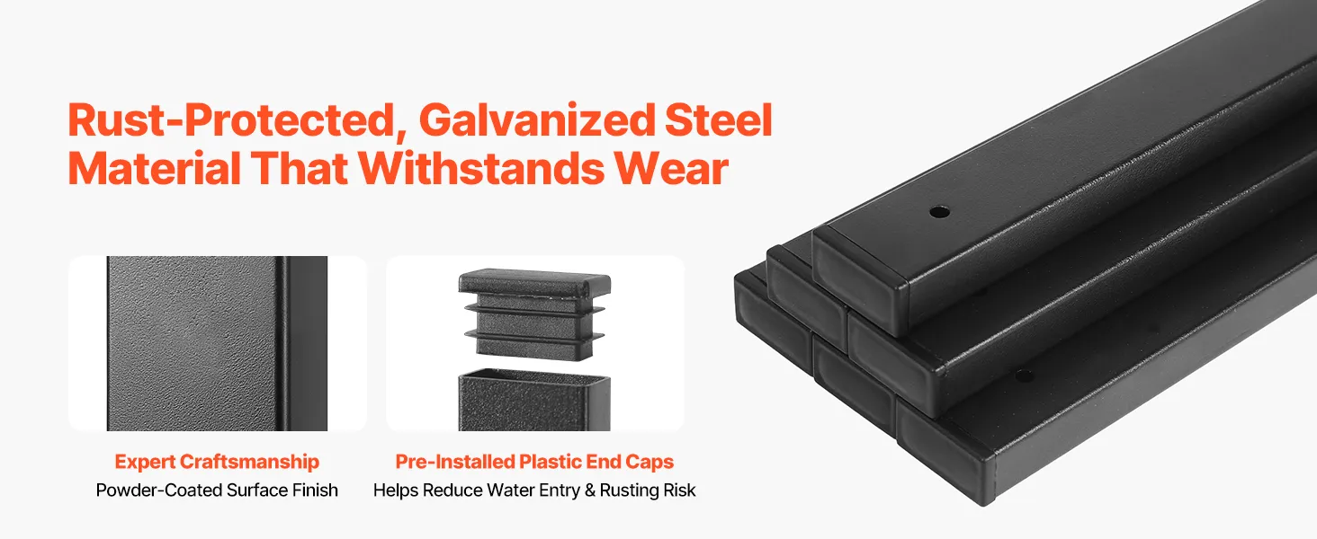 Outdoor Use: The coated galvanized steel deck railing spindles withstand sun, rain, and wet conditions, while end caps help reduce water entry for longer-lasting outdoor use