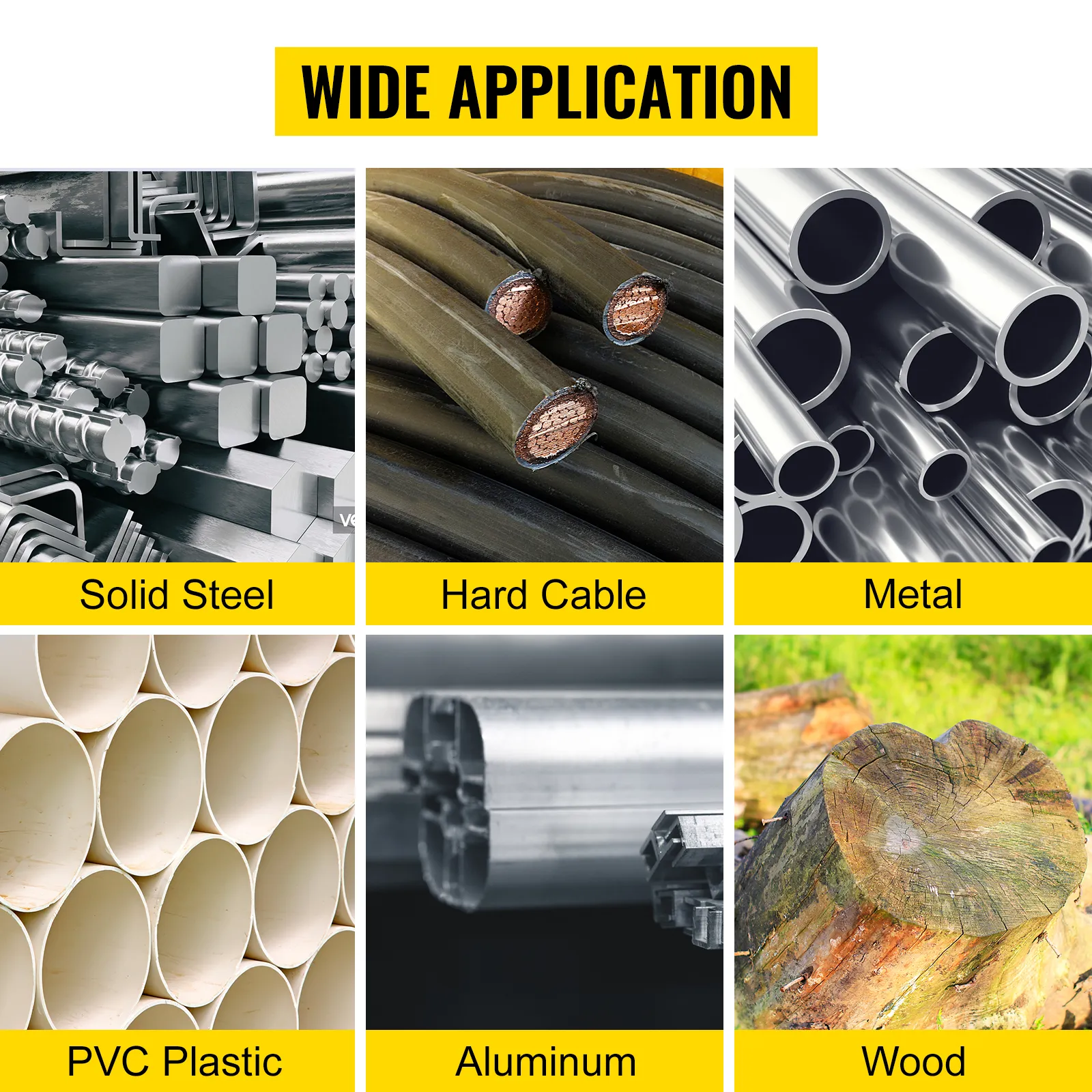 It is widely used to cut stainless steel, aluminum, metal, iron, hard cable, wood, PVC, plastic, rubber, and other materials.