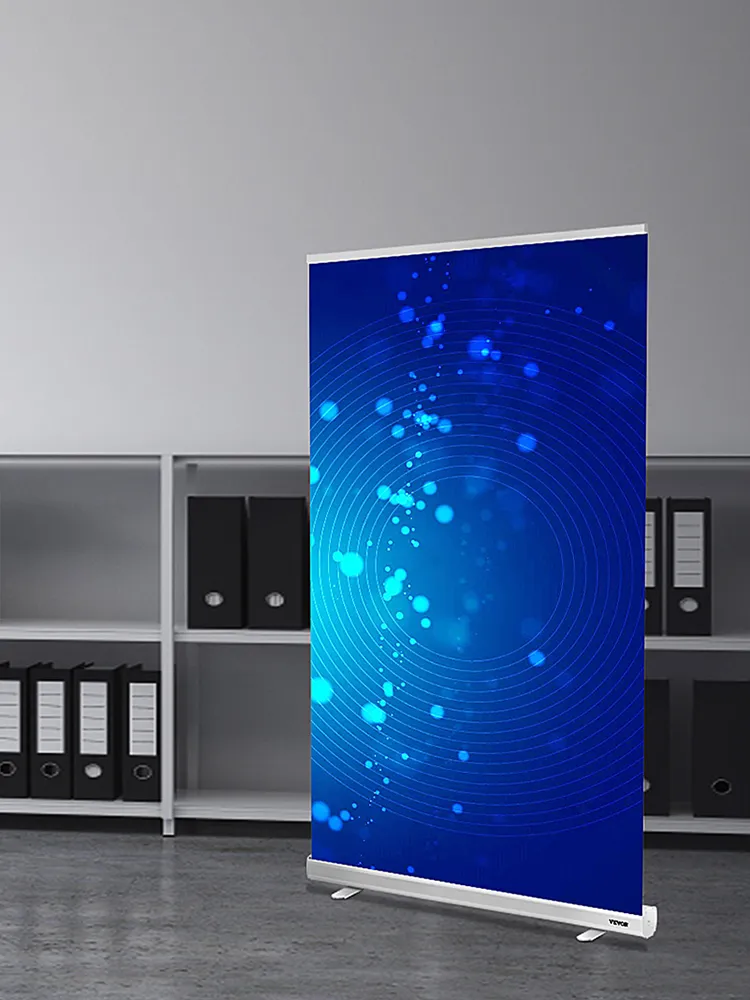 Our clear roll-up shield can be used to display your posters and divide space without obstructing your view, perfect for setting up partitions in offices, airports, shops, nail salons, or receptions.