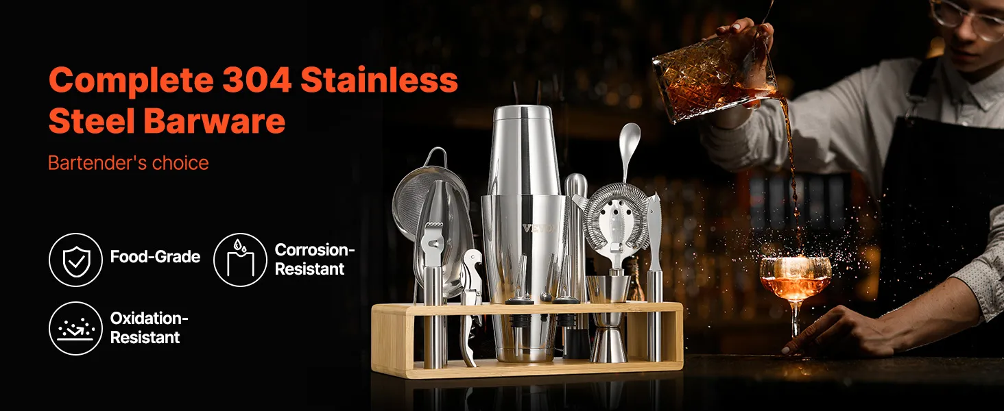Our bar tool set is a favorite among professional bartenders. Exceptional corrosion resistance and high metal purity ensure that every cocktail retains its authentic taste and flavor.
