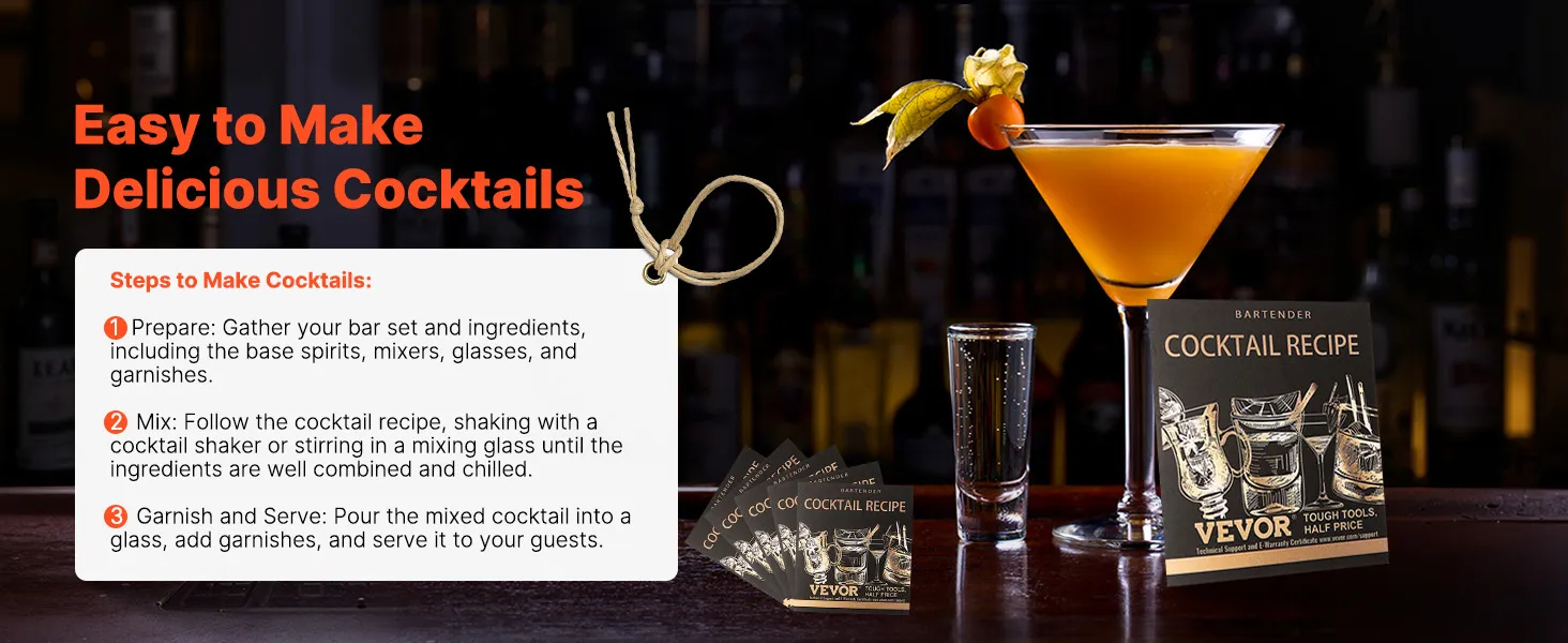 Every detail is thoughtfully designed to make the complex bartending process simple and intuitive. With the cocktail-making tips introduced on the cocktail cards, you can mix exquisite cocktails that rival those from professional bars, and enjoy delicious cocktails even at home.
