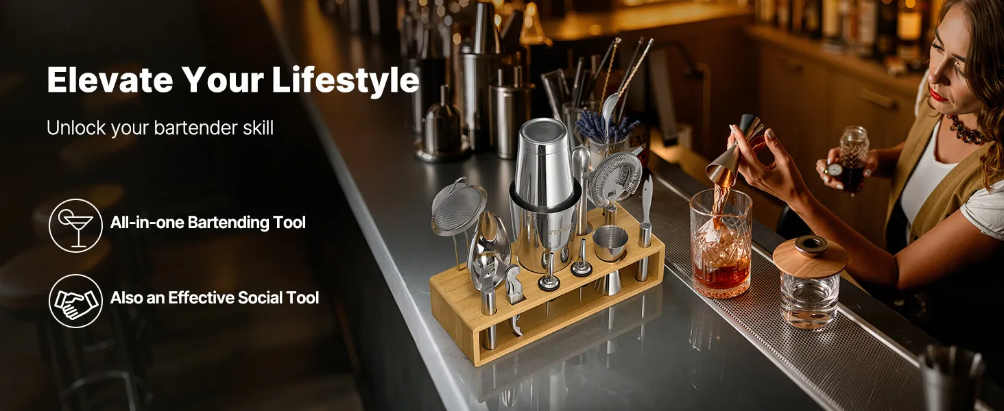 From beginner to home bartending master, this bartender kit provides all the standard tools you need for a quick start and enhances your lifestyle. Transform your social gatherings from ordinary to creative and charming.