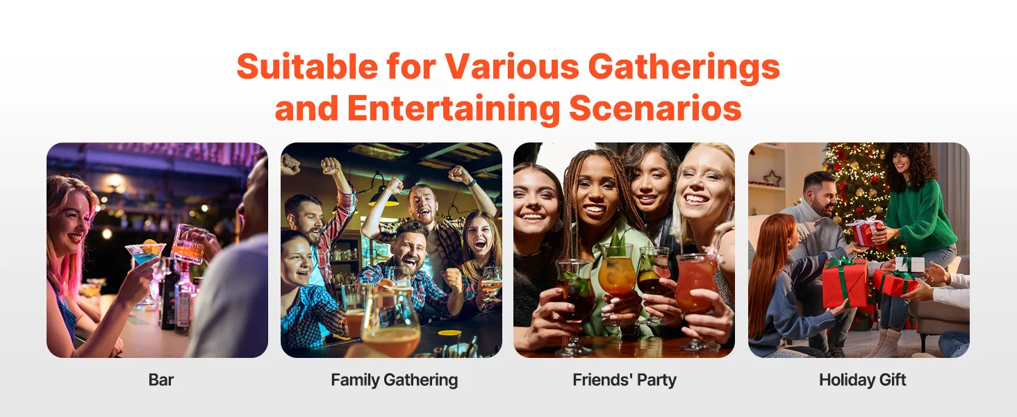 Whether it's a bar party, family gathering, friends' party, or holiday gift, the delicious cocktails will elevate your social moments and brighten the happy atmosphere.