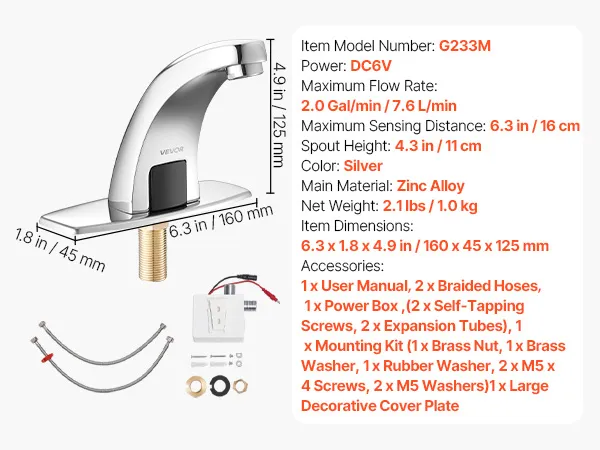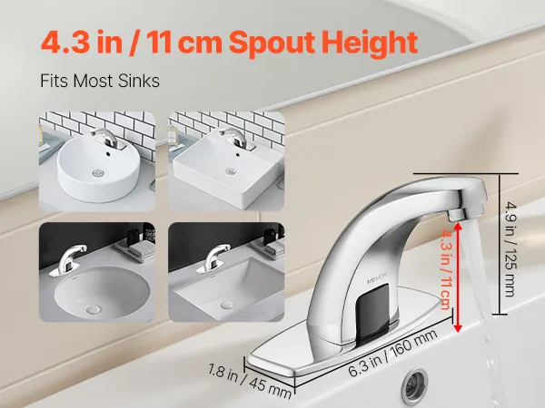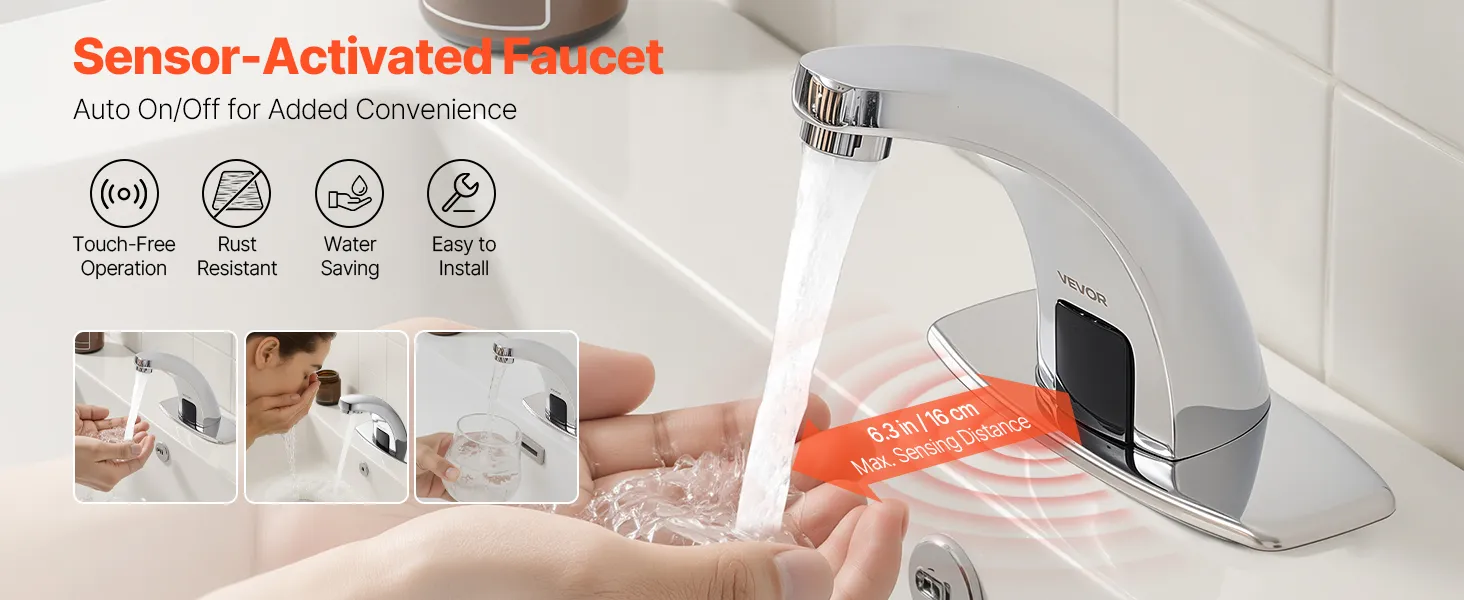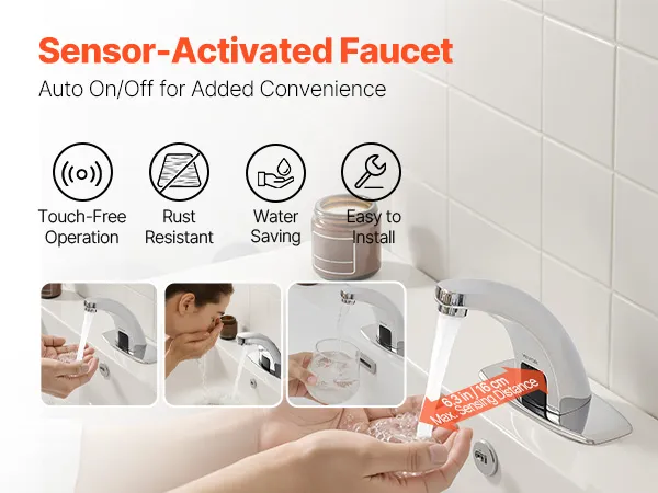 Automatic Water Flow: Upgrade your bathroom with this touchless bathroom faucet. The infrared sensor faucet activates water flow automatically. With 6.3in /16cm long sensing range, this faucet delivers water effortlessly for easier handwashing