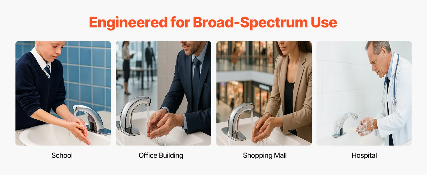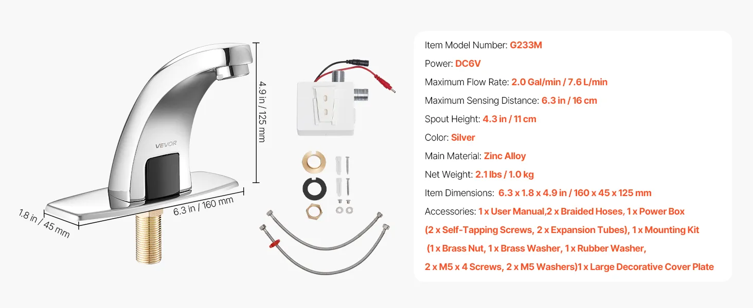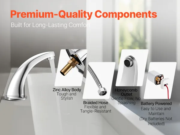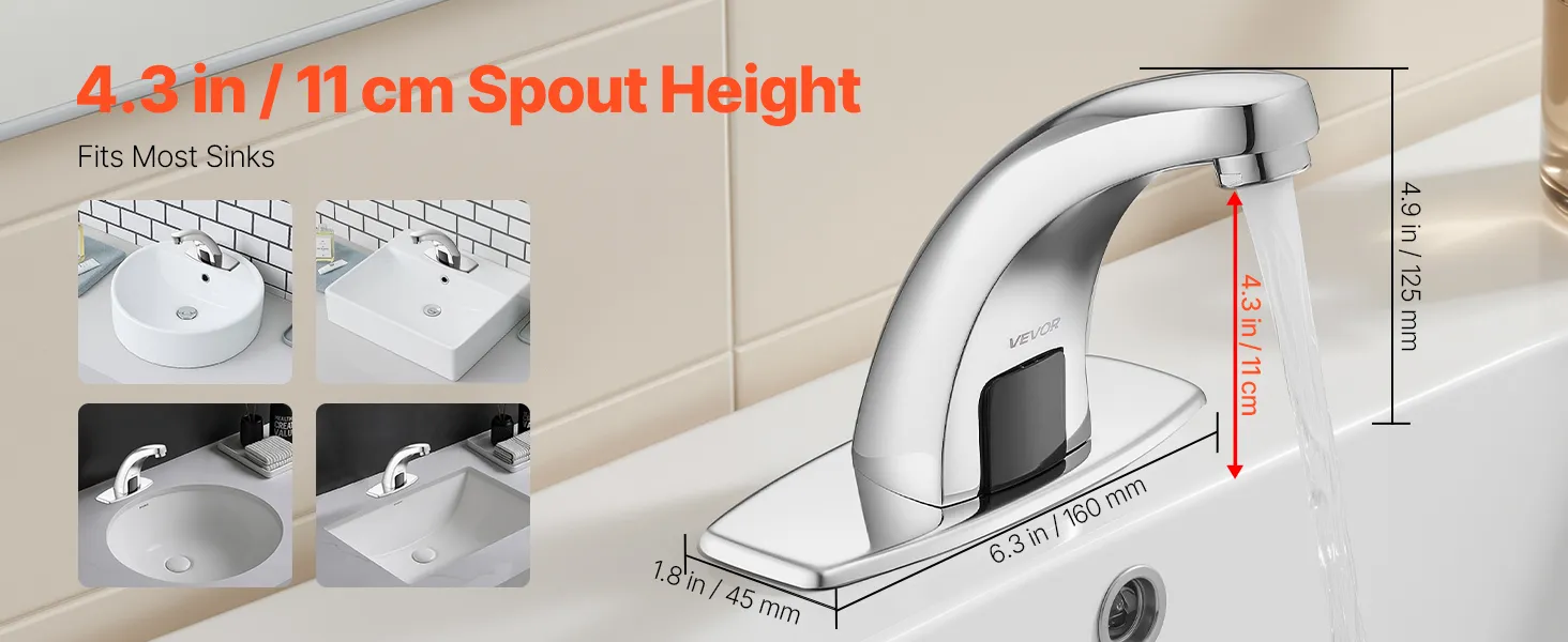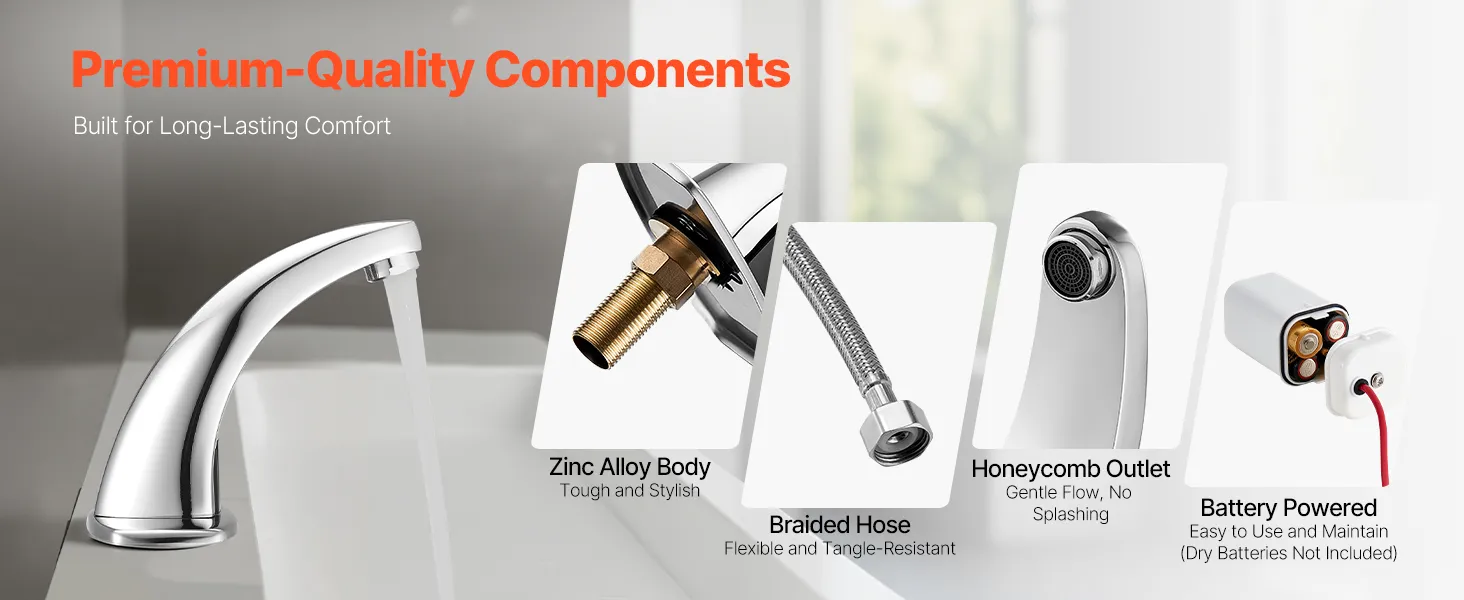 Sturdy & Rust-Resistant: This touchless faucet is made of zinc alloy with a smooth surface and chrome-plated finish. It stands up well to daily use and retains its appearance even in areas with frequent humidity