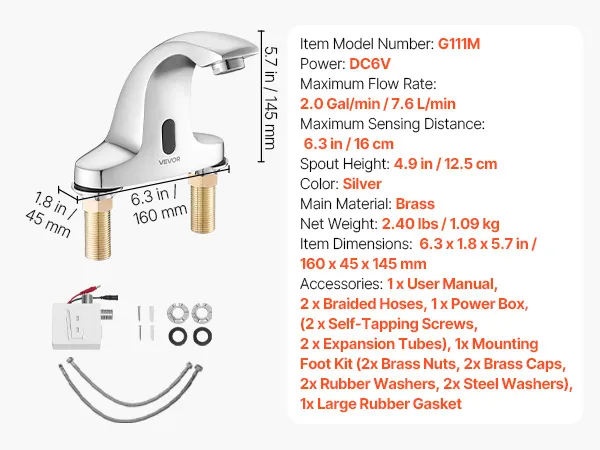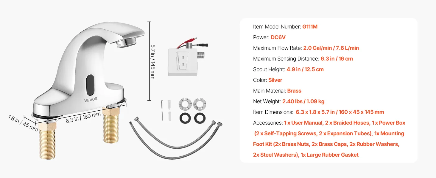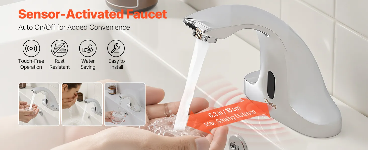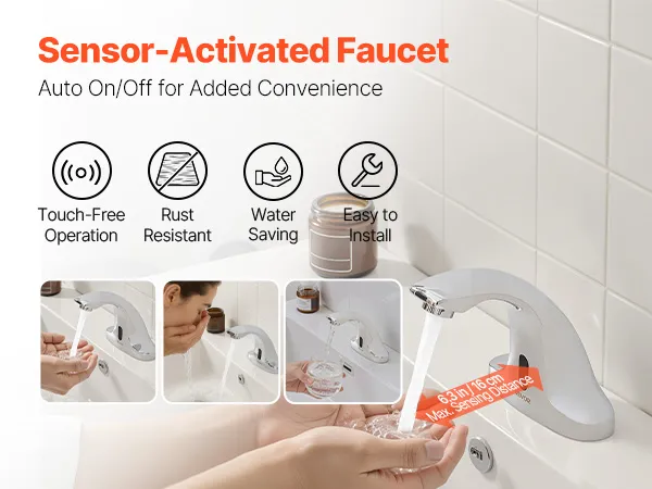 • Automatic Water Flow: Upgrade your bathroom with this touchless bathroom faucet. The infrared sensor faucet activates water flow automatically. With 6.3in /16cm long sensing range, this faucet delivers water effortlessly for easier handwashing