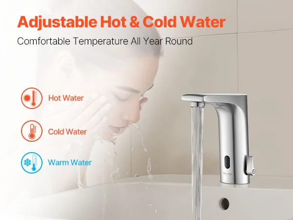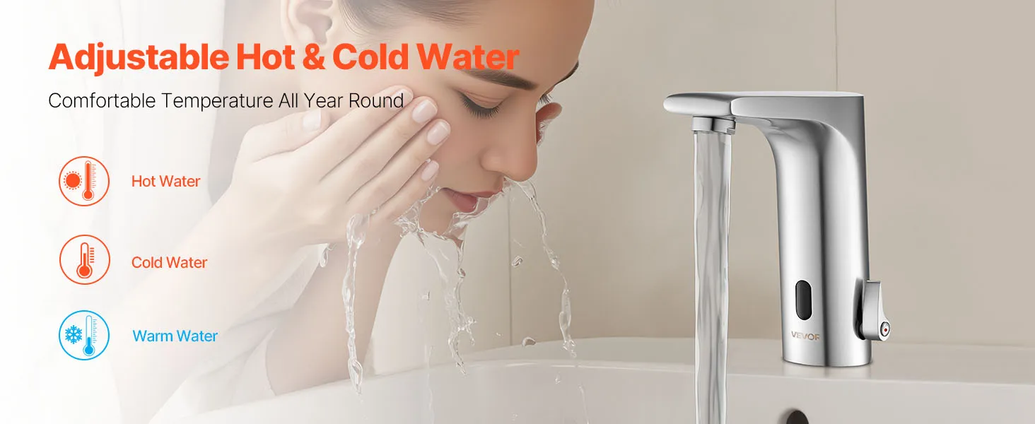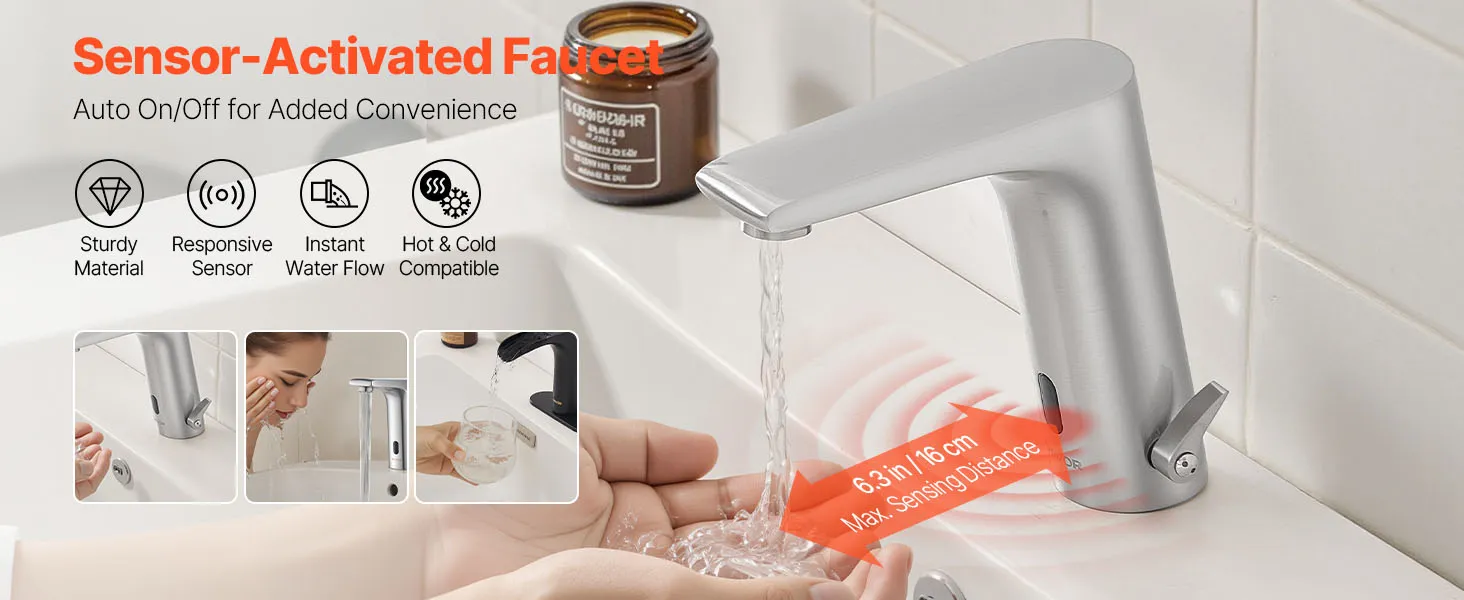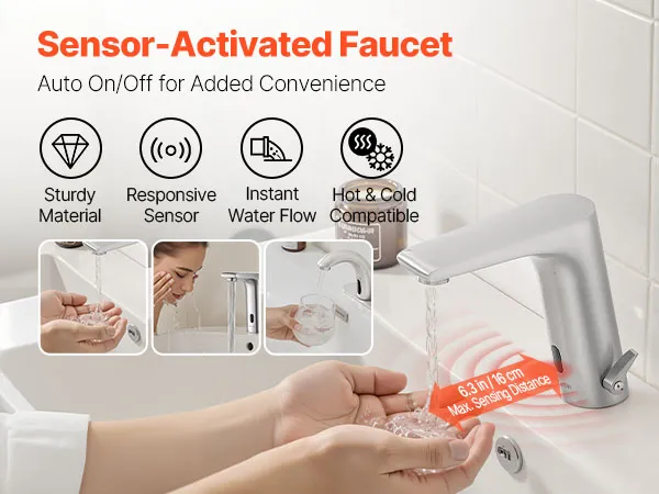 Automatic Water Flow: Upgrade your bathroom with this touchless bathroom sink faucet. The built-in infrared sensor faucet activates water flow automatically. With a long sensing range, this faucet delivers water effortlessly for easier handwashing