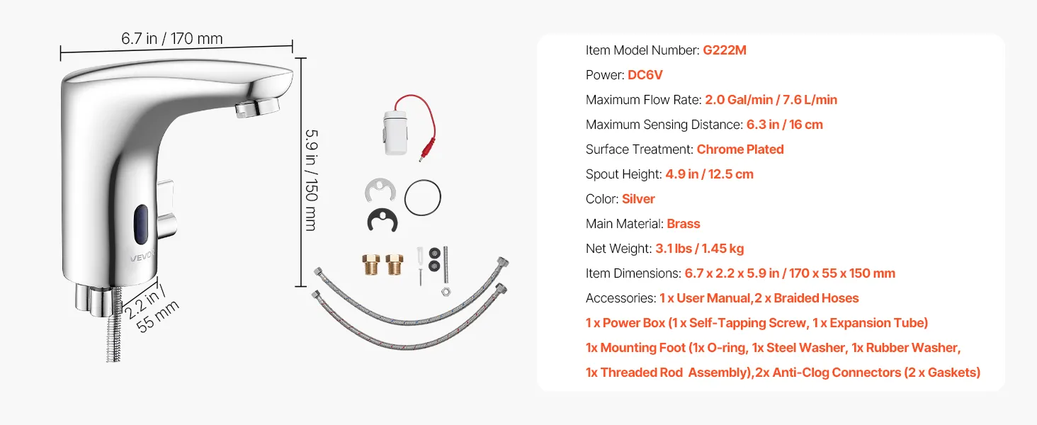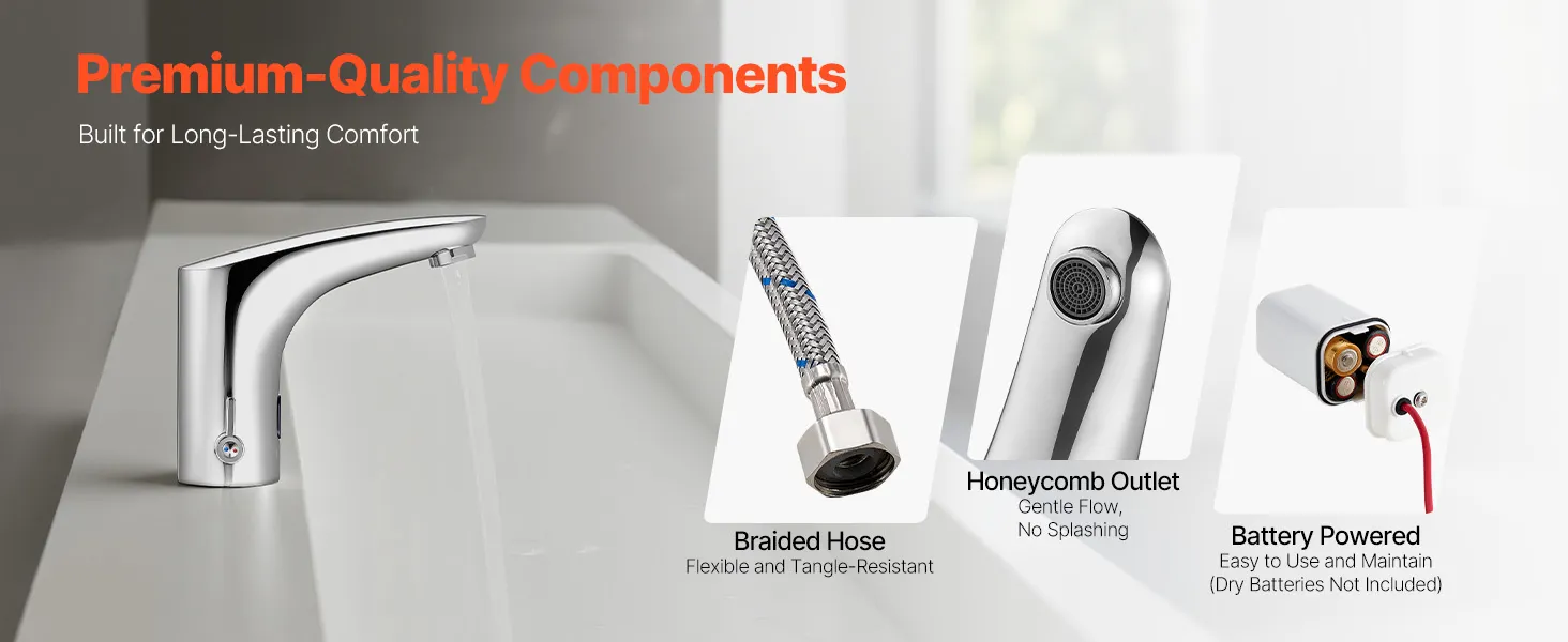 Sturdy & Rust-Resistant: This touchless faucet is made of brass, offering strong resistance to water exposure. It maintains water quality, withstands wear from frequent use, and performs reliably in damp-prone areas over extended periods