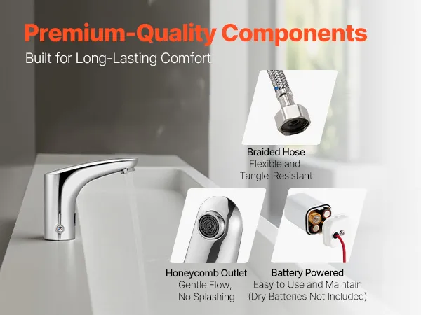 Easy Maintenance: Powered by 4 AA alkaline batteries (not included), this touchless bathroom faucet is secure and easy to maintain. Simply unscrew the top cap—no tools needed—for quick battery replacement