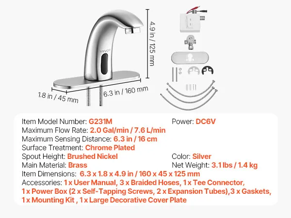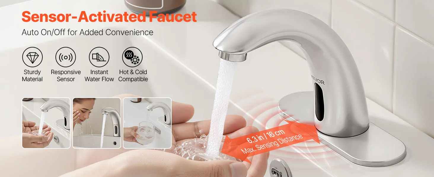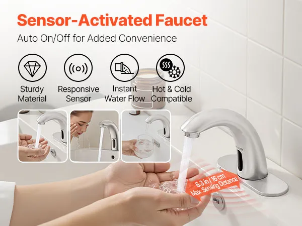 • Automatic Water Flow: Upgrade your bathroom with this touchless bathroom sink faucet. The built-in infrared sensor faucet activates water flow automatically. With a long sensing range, this faucet delivers water effortlessly for easier handwashing