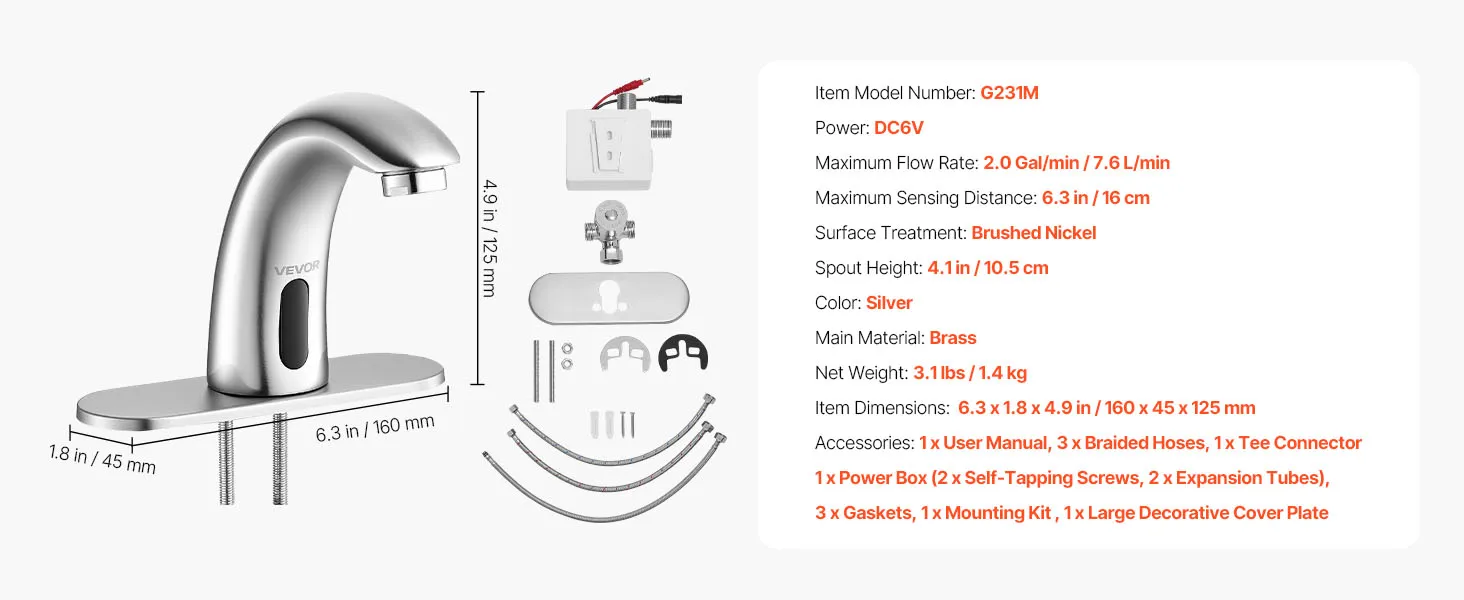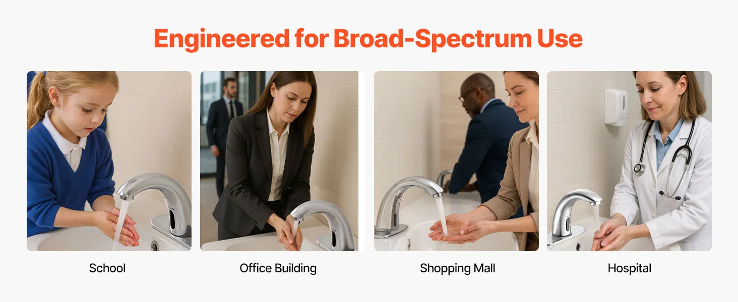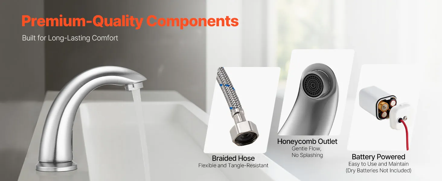• Sturdy & Rust-Resistant: This touchless faucet is made of brass, offering strong resistance to water exposure. It maintains water quality, withstands wear from frequent use, and performs reliably in damp-prone areas over extended periods
