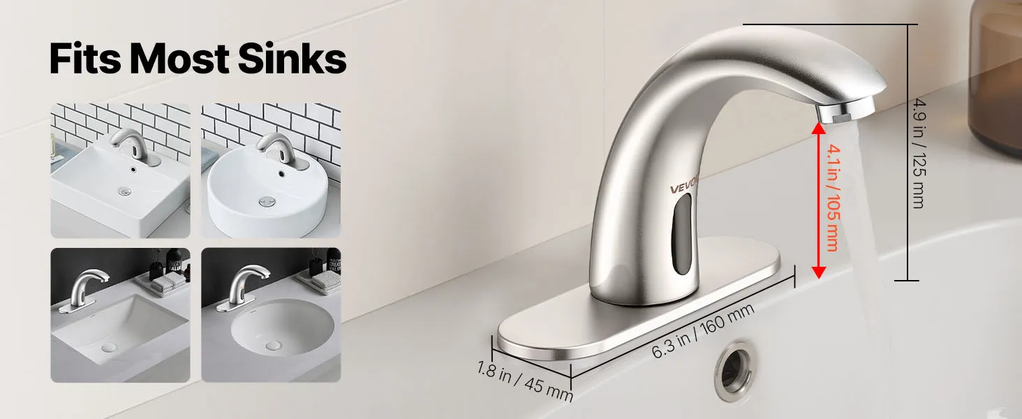 • Highly Compatible: This touchless faucet features a standard installation size, making it compatible with most popular sink brands. Whether you're upgrading or replacing, it fits seamlessly into your setup for a stress-free installation experience
