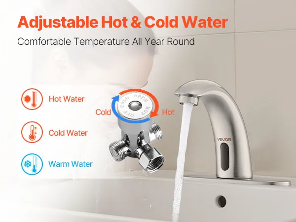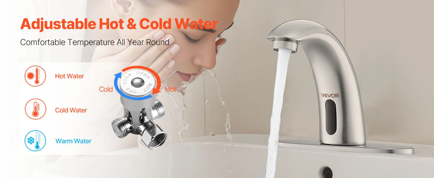 VEVOR Touchless Bathroom Sink Faucet, Automatic Motion Sensor Restroom Toilet Faucet with Hole Cover Plate, Battery Operated,Adjustable Temp for 14.3mm Pipe Commercial Lavatory,Brushed Nickel Silver VEVOR Touchless Bathroom Sink Faucet, Automatic Motion Sensor Restroom Toilet Faucet with Hole Cover Plate, Battery Operated,Adjustable Temp for 14.3mm Pipe Commercial Lavatory,Brushed Nickel Silver