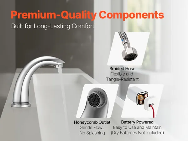 • Easy Maintenance: Powered by 4 AA alkaline batteries (not included), this touchless bathroom faucet is secure and easy to maintain. Simply unscrew the top cap—no tools needed—for quick battery replacement