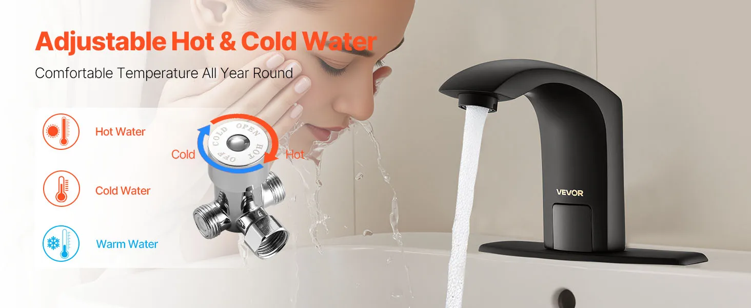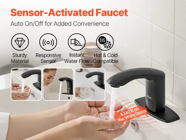 Automatic Water Flow: Upgrade your bathroom with this touchless bathroom sink faucet. The built-in infrared sensor faucet activates water flow automatically. With a long sensing range, this faucet delivers water effortlessly for easier handwashing