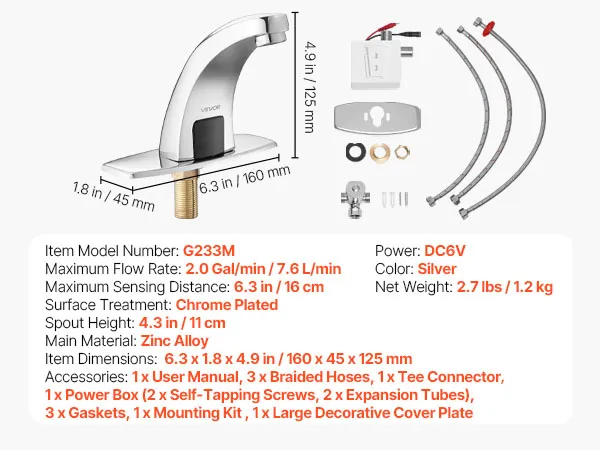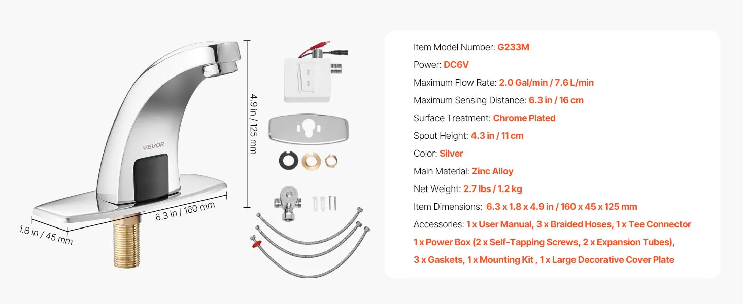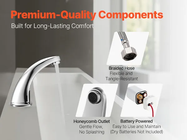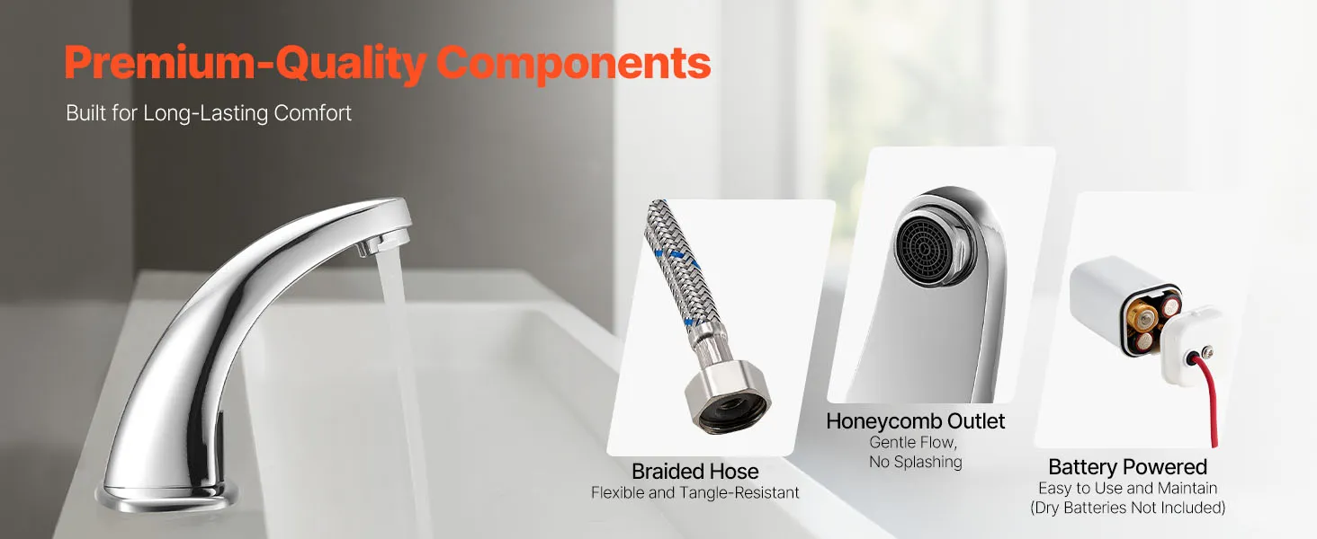 Sturdy & Rust-Resistant: This touchless faucet is made of zinc alloy with a smooth surface and chrome-plated finish. It stands up well to daily use and retains its appearance even in areas with frequent humidity
